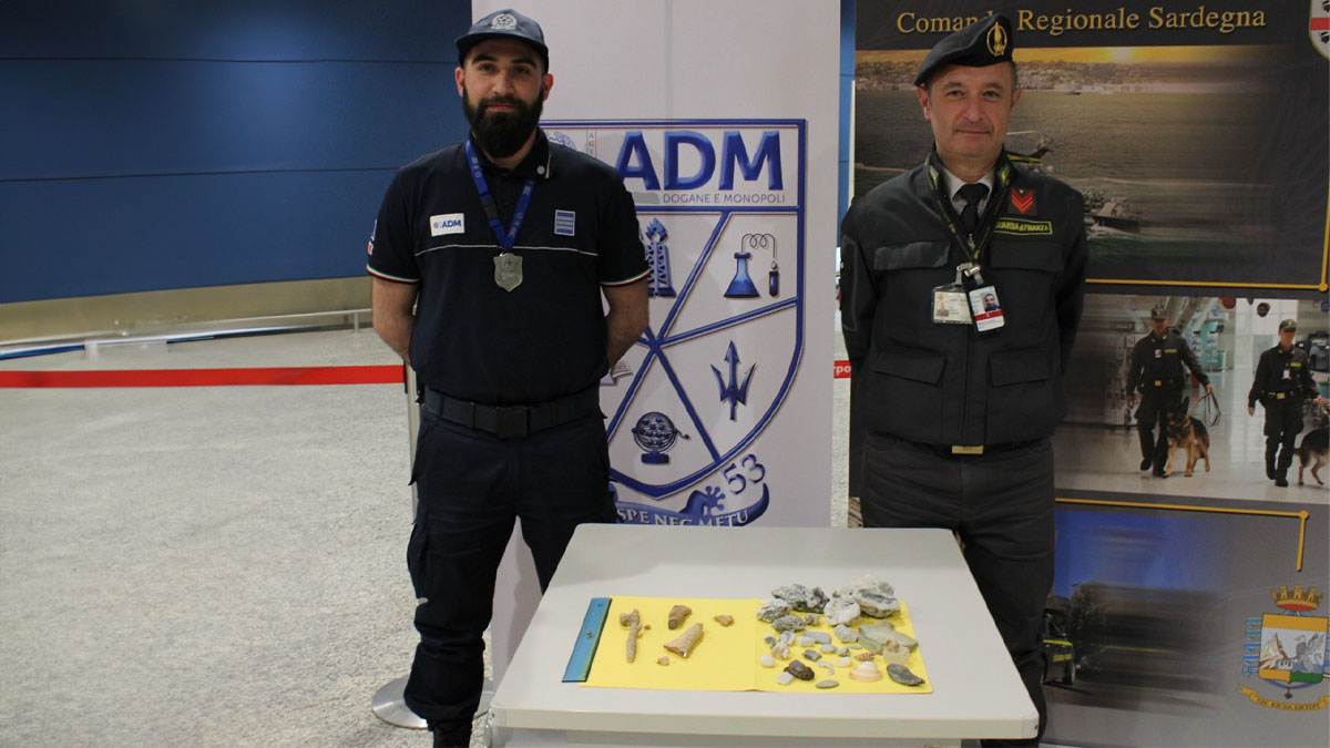 Conchiglie e stalagmiti sequestrate all'Aeroporto di Cagliari-Elmas