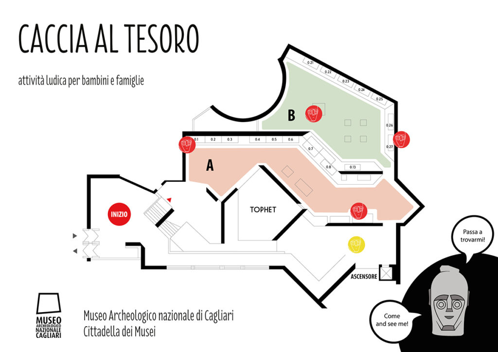 Giocare per conoscere all’insegna del divertimento. Fino a giovedì 31 dicembre 2020, dalle 9 alle 20, il Museo Archeologico Nazionale di Cagliari, in Cittadella dei Musei, organizza un percorso ludico rivolto a bambini e ragazzi per imparare l’archeologia e la storia dei reperti esposti. Tutti i bambini che visiteranno il Museo potranno partecipare ad una vera e propria caccia al tesoro attraverso la ricerca, lungo un percorso organizzato, dei reperti indicati in una mappa disponibile in italiano e inglese, che verrà consegnata presso la biglietteria. Al termine della ricerca ai piccoli visitatori verrà consegnato un simpatico omaggio. L’attività è dedicata alle famiglie e sarà accessibile a persone con disabilità motoria, psico- cognitiva e uditiva.