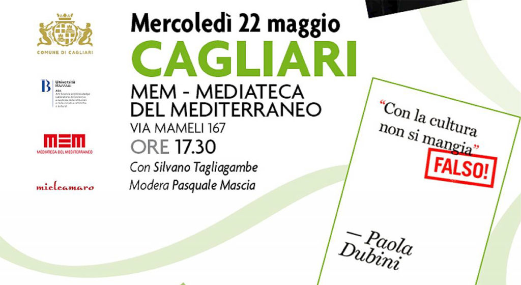Mercoledì 23 maggio alle ore 17.30 presso lo Spazio Eventi al primo piano della Mem – Mediateca del mediterraneo, Lìberos, la comunità dei lettori sardi, presenta “Con la cultura non si mangia: falso!” (Laterza) di Paola Dubini con Silvano Tagliagambe; modera Pasquale Mascia.
