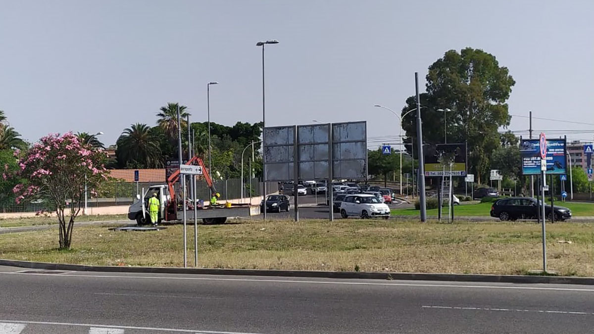 Cagliari. Su mandato del Servizio Tributi dell’amministrazione comunale, che ha segnalato la presenza di diversi impianti abusivi nei pressi della rotatoria, è stata effettuato, questa mattina di mercoledì 22 giugno, un intervento coordinato della Polizia Locale. Un’impresa specializzata ha proceduto alla rimozione di circa una decina di impianti, alcuni dei quali di grandi dimensioni e tutti abusivi.