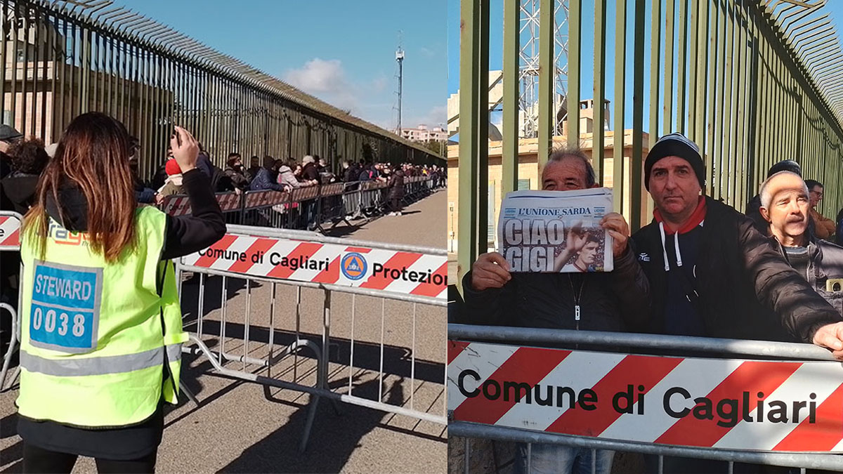A Cagliari una lunghissima fila di persone per salutare per l'ultima volta Gigi Riva