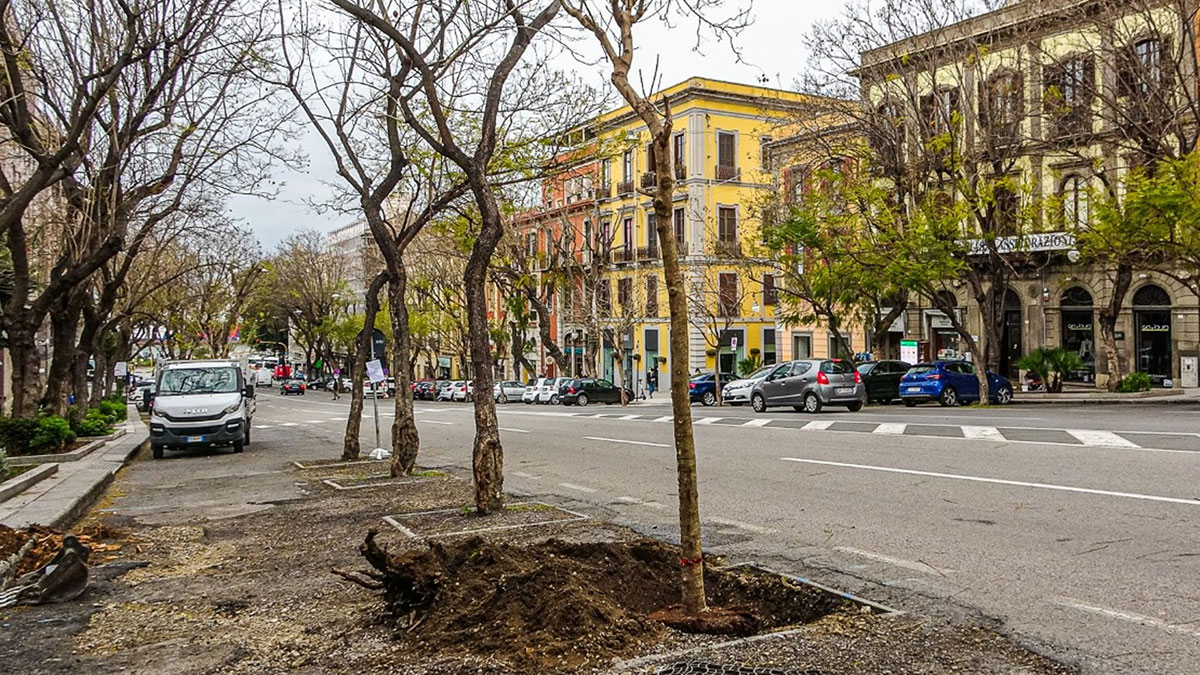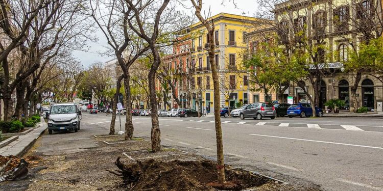 Cagliari. Sono iniziati oggi, lunedì 26 aprile 2021, i lavori di sostituzione e messa a dimora di diciotto esemplari di jacaranda nel Largo Carlo Felice.