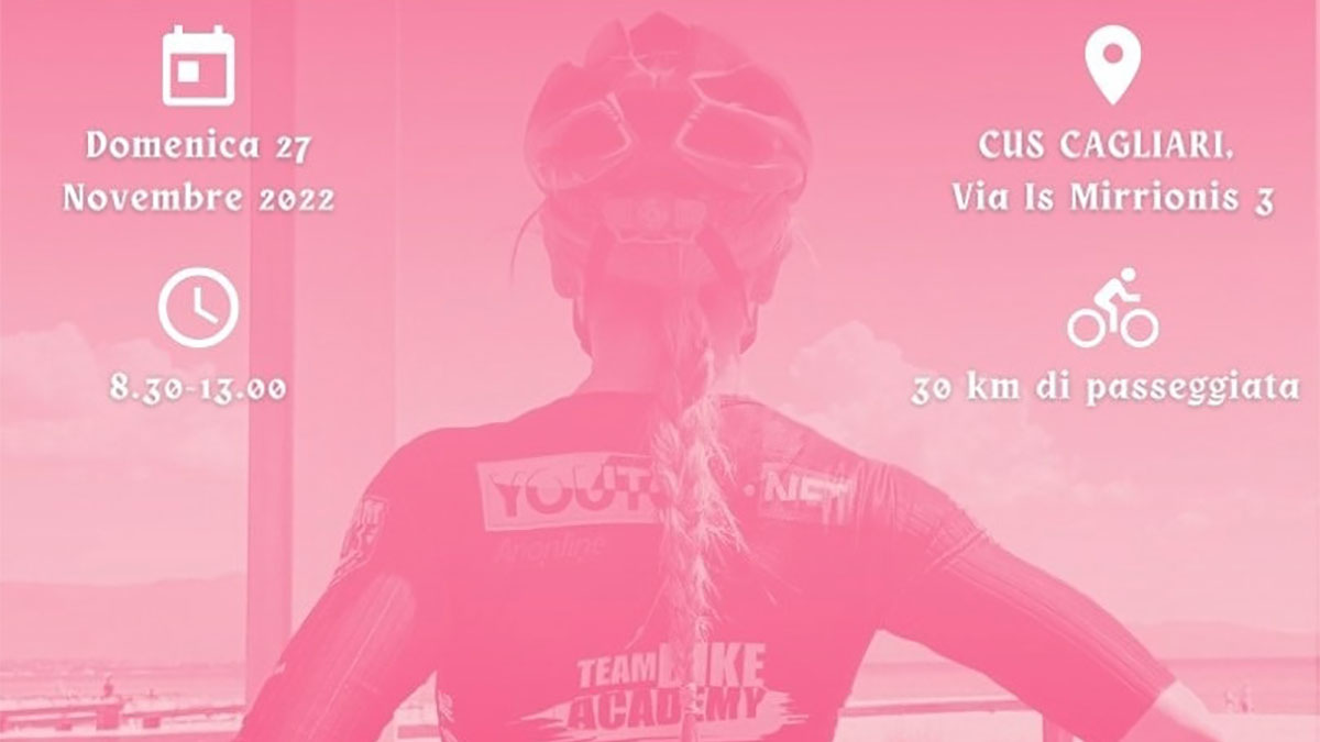 Col patrocinio del Comune di Cagliari e Quartu Sant’Elena, domani, domenica 27 novembre 2022 alle 9 del mattino (ritrovo alle 8:30) dal CUS Cagliari partirà la ciclopedalata #rideforwomen.