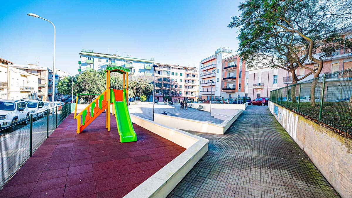 Cagliari. Sono state aperte al pubblico nella mattina di oggi, mercoledì 27 dicembre 2023 le nuove aree giochi e aree cani in Piazza paese di Seui nel quartiere di Is Mirrionis.
