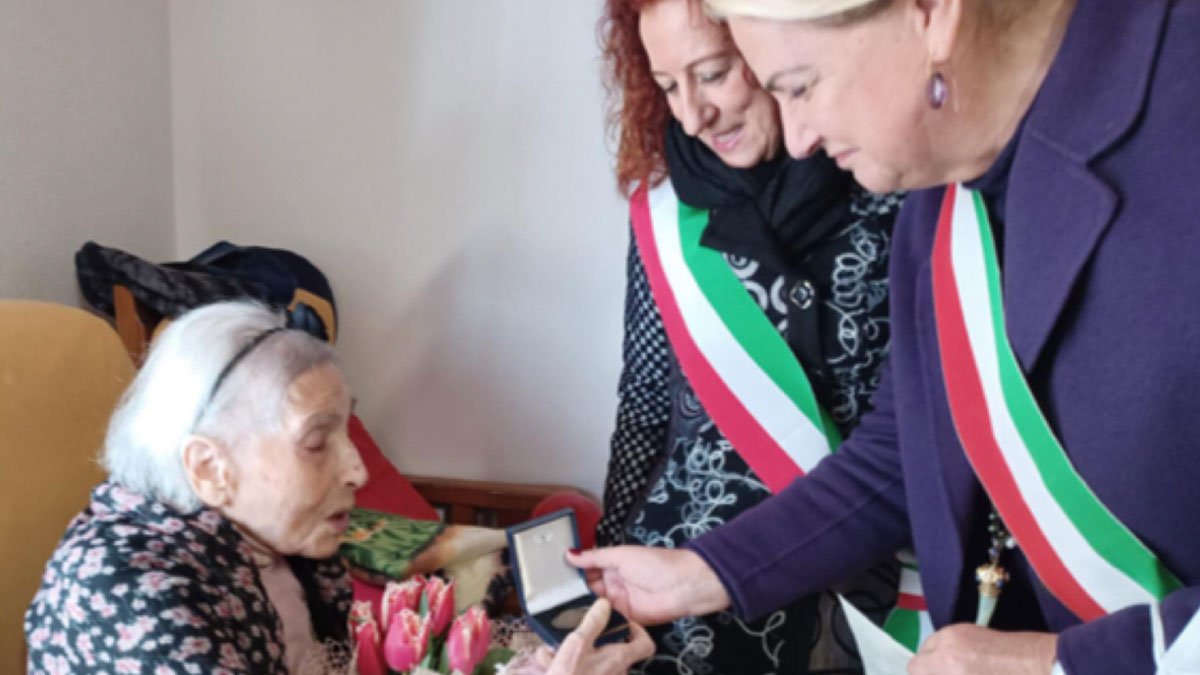 Alla signora Cambarau l’Assessora Lantini ha portato una medaglia ricordo e una pergamena celebrativa di una giornata così speciale.