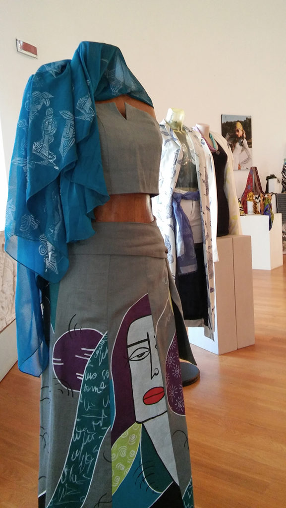 Un lavoro artistico di un’artigiana olbiese doc, che ha portato le sue tele ad essere esposte al Museo di Aggius e i suoi abiti a sfilare in tutta la Sardegna. “Mirtò è un appuntamento importante, hanno sempre creduto nel nostro lavoro e lo fanno conoscere, coinvolgendo i visitatori e raccontando le nostre opere – conferma Irene Piccinnu -. Quest’anno è stata lanciata la novità dei laboratori. Ieri ho mostrato la tecnica della pittura su stoffa, usando semplicemente pennelli e colori. Il pubblico ha mostrato interesse”.