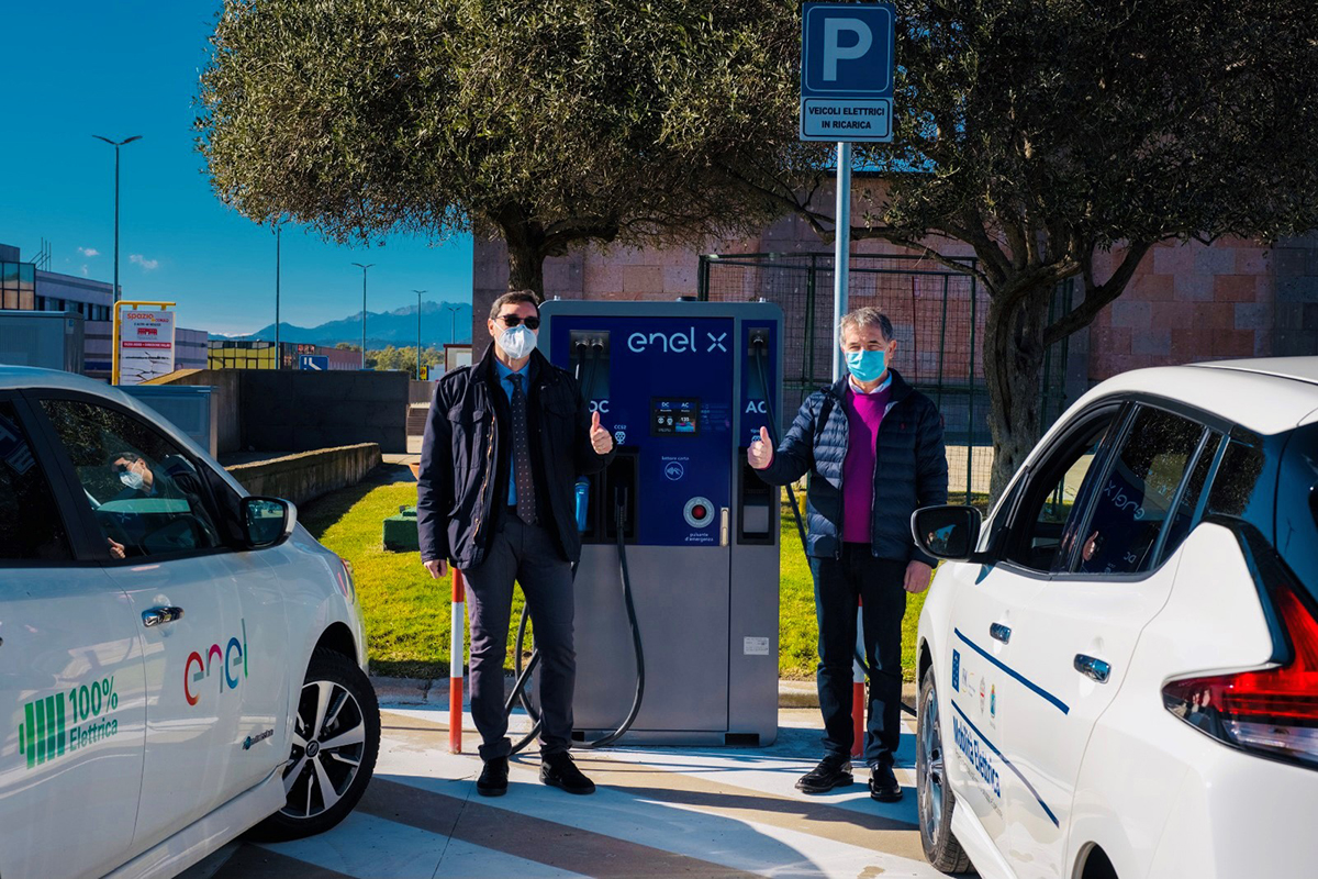 Il sindaco Settimo Nizzi e Stefano Orefice, Responsabile Commerciale di Enel X Mobility per la Sardegna