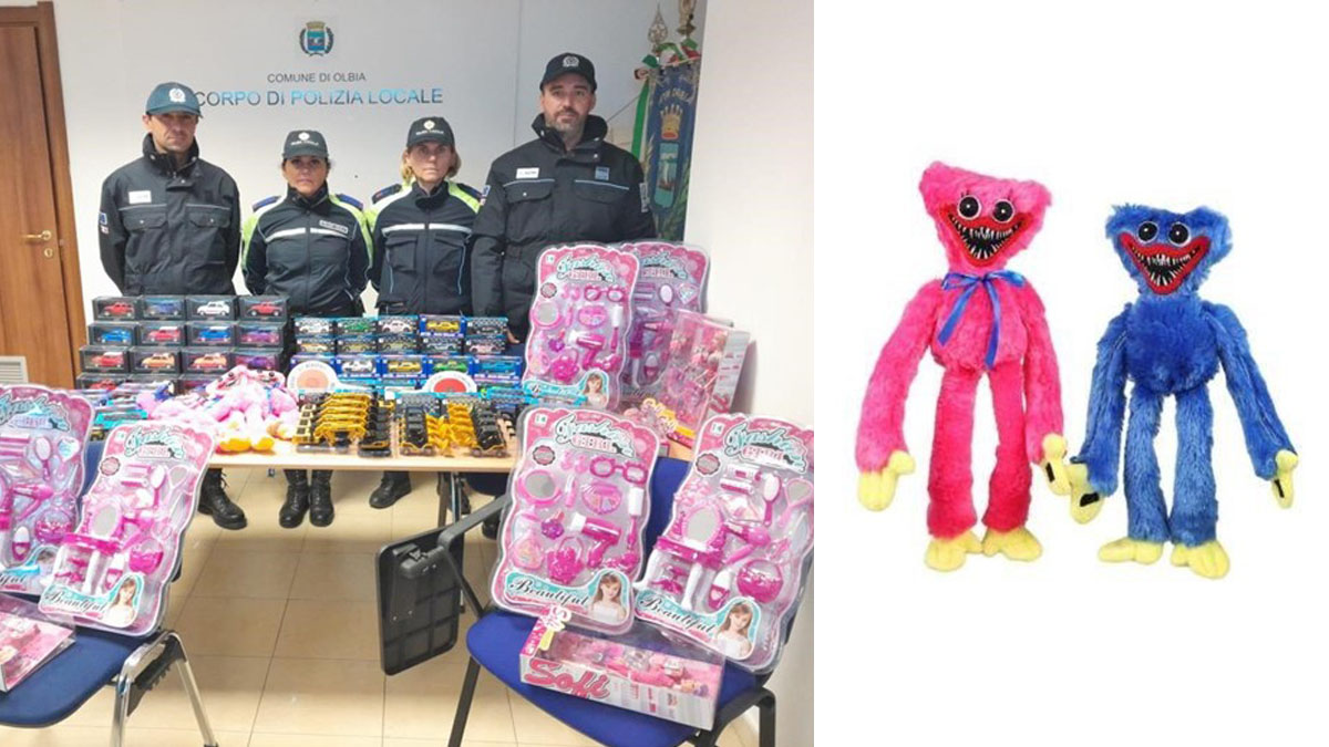 Tra questi articoli erano presenti anche alcuni esemplari dei famosi pupazzi Huggy Wuggy, sempre più diffusi nei contenuti visualizzati dai bambini su YouTube, (sprovvisti di marchiatura CE e di etichettatura), i quali nel mese di maggio, sono stati oggetto di avviso prudenziale da parte della Polizia Postale e dichiarati pericolosi per i minori di 13 anni, come riportato da uno studio condotto dagli psicologi dell’Unità analisi del crimine informatico della Polizia Postale, il pupazzo potrebbe generare nei bambini ansie e paure.