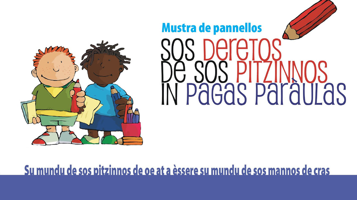 Otto pannelli illustrati in lingua sarda per esprimere un tema che non conosce confini temporali né geografici, il tema sempre attuale dei diritti dei bambini.