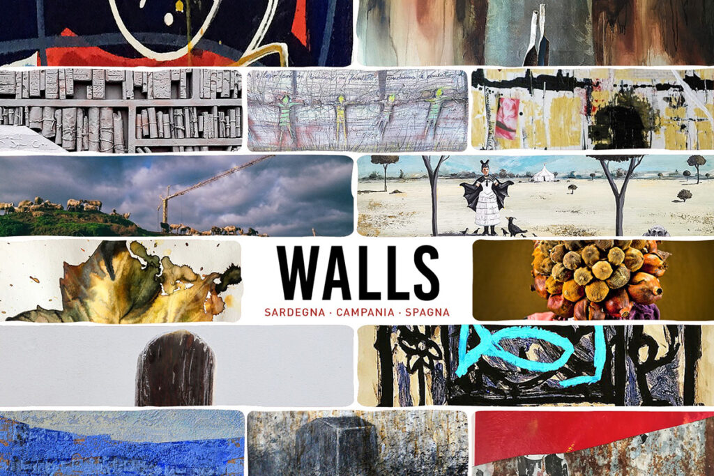 Walls è una mostra collettiva che vede la partecipazione di quattordici artisti sardi, campani e spagnoli, nata da un gemellaggio artistico iniziato nel mese di maggio 2019 negli spazi espositivi di Aversa, proseguito poi a Oristano nelle sale della nostra Pinacoteca.