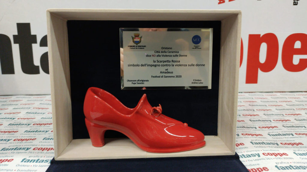 L’iniziativa è dell’Assessore all’Artigianato del Comune di Oristano Pupa Tarantini che ha affidato a Paolo Palumbo il simbolo, in ceramica, dell’impegno contro la violenza di genere: “Da anni siamo impegnati su questo fronte e con le scarpette rosse in ceramica Oristano, insieme a tutte le città aderenti all’AICC (Associazione italiana delle città della ceramica), è riuscita a trovare un simbolo forte capace di evocare immediatamente i valori a cui ci ispiriamo. Ringraziamo Paolo Palumbo che sarà il nostro ambasciatore sul prestigioso palco del Teatro Ariston e confidiamo sulla disponibilità di Amadeus e su quella del numerosissimo pubblico del Festival affinchè il messaggio di solidarietà e di civiltà diventi sempre più forte e aiuti a combattere il triste fenomeno della violenza contro le donne”.