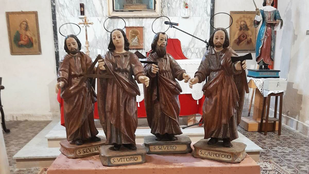 Protettori della città di Como, degli scultori, degli scalpellini e dei muratori, i Santi Vittorio, Severo, Severiano e Cappoforo, a Oristano si festeggiano l’8 novembre nella chiesa di Santa Lucia, sede del Gremio del Muratori.