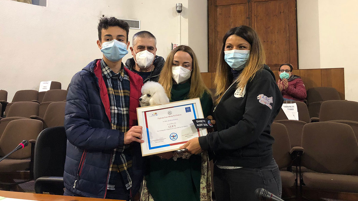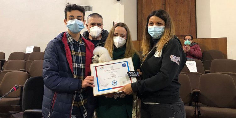 Oristano. Glicy da oggi è ufficialmente il primo cane allerta diabete della Sardegna. Questa mattina, nella sala consiliare del Comune di Oristano, nel corso di una breve cerimonia, è stato consegnato il diploma che attesta questa sua particolare abilità.