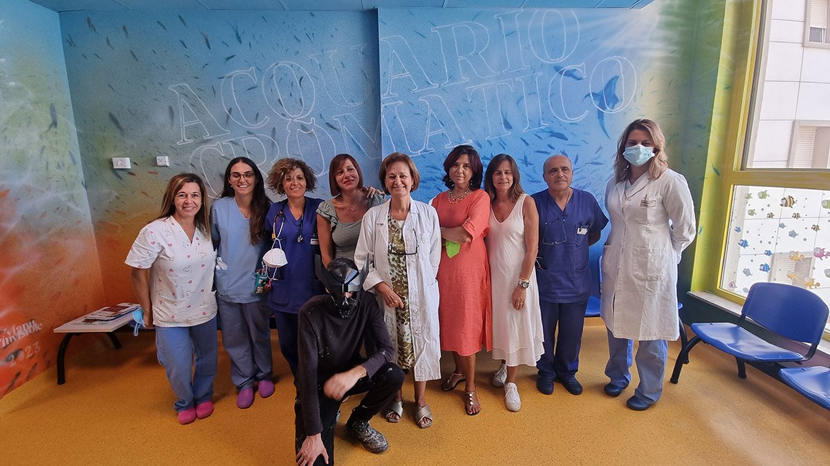 L’artista ha concluso l’opera nella sala d’aspetto, stamani il saluto al reparto e la presentazione al personale sanitario e ad un gruppo di bambini
