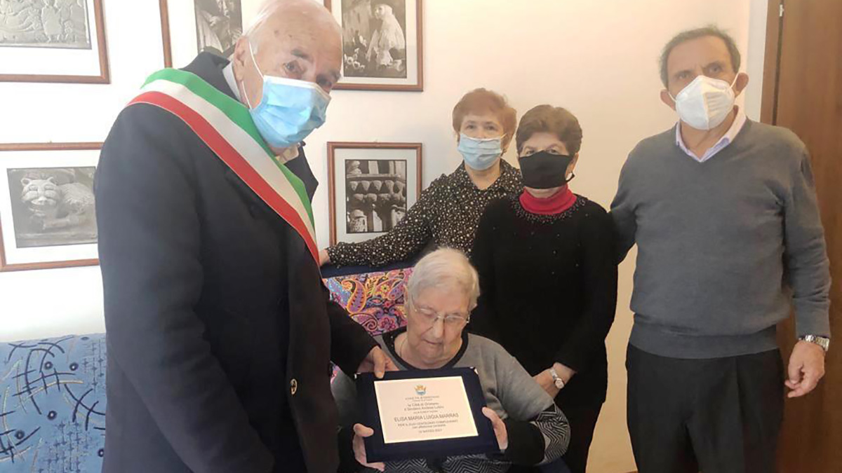 Oristano festeggia Lisetta Marras che oggi compie 100 anni. Per il suo primo secolo di vita, signora Lisetta oggi è stata festeggiata nella sua casa di via Alagon da familiari e amici. L’Assessore comunale Francesco Pinna ha partecipato alla festa, consegnandole una targa di auguri a nome del Sindaco Lutzu e della città.