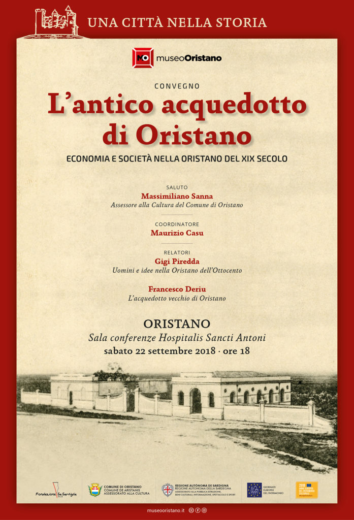 In occasione delle Giornate Europee del Patrimonio 2018, la Fondazione Sa Sartiglia Onlus, in collaborazione con l’Assessorato alla Cultura del Comune di Oristano, organizza il convegno, dal titolo “L’antico acquedotto di Oristano”.