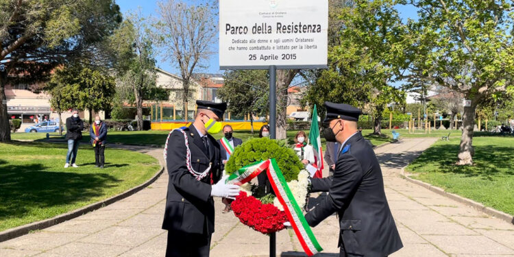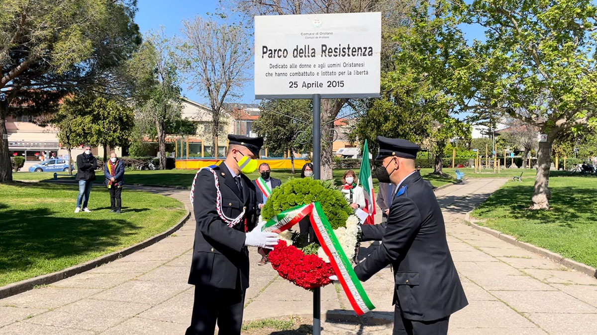 Oristano. Comune, Prefettura e ANPI, nel rispetto delle norme anti Covid, hanno reso onore ai valori del 25 Aprile deponendo una composizione floreale al Centro Giovani Flavio Busonera, al Parco della Resistenza di viale Repubblica e davanti al monumento ai Caduti di Piazza Mariano.
