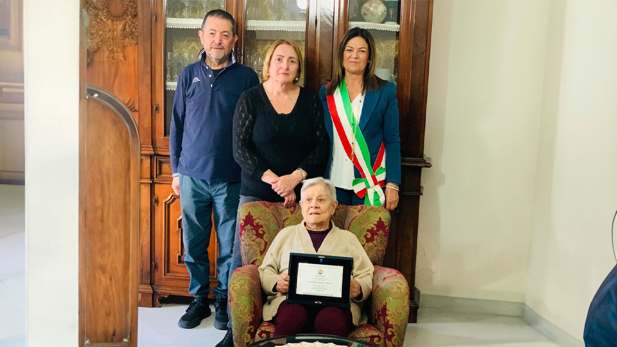 Una vita dedicata alla famiglia e alla fede, tra maglieria e devozione a Sant’Efisio. L'assessore Zedda le consegna una targa a nome della comunità