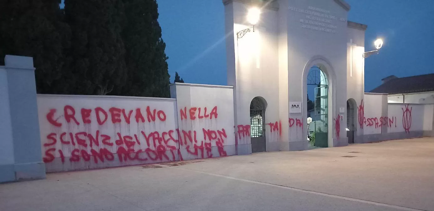 Il cimitero di San Pietro a Oristano è stato oggetto, nella notte, di un grave atto vandalico: i muri di cinta sono stati imbrattati con scritte no vax, volgari e offensive.