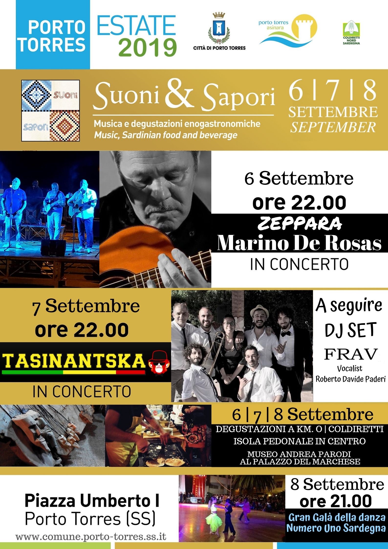 La musica, la danza e l’intrattenimento per tutti, giovani e famiglie. In più tanti buoni prodotti a chilometro zero da degustare nel centro di Porto Torres, che si vestirà a festa per l’ottava edizione di Suoni & Sapori. L’evento organizzato dall’Amministrazione comunale è in programma il 6, 7 e 8 settembre in Piazza Umberto I e nel cuore della città.