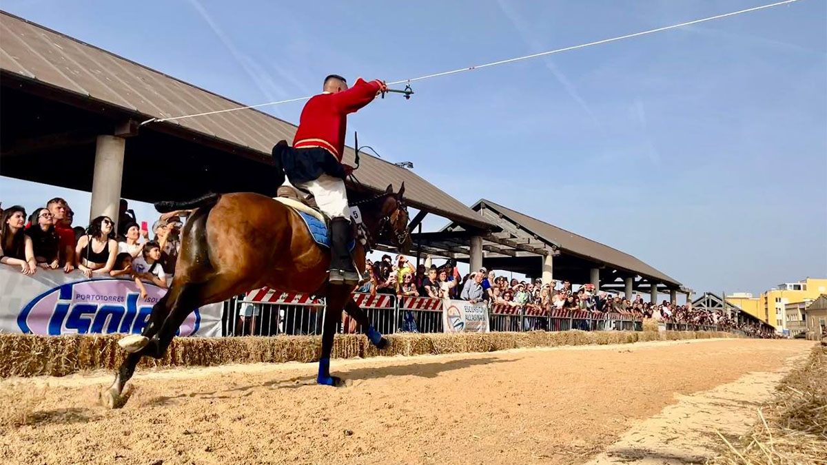 33 i binomi che hanno percorso la pista di sabbia lunga oltre 300 metri, allestita lungo la Via Mare, per cercare di centrare gli anelli, posti a 40 metri di distanza l’uno dall’altro e a 3 metri d’altezza, contendendosi così il montepremi complessivo di 3600 euro suddiviso tra i primi 5 classificati.