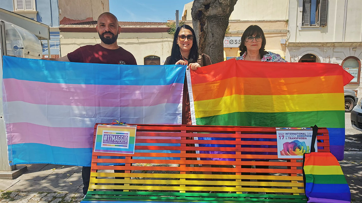 A Porto Torres una panchina arcobaleno per la Giornata internazionale contro l’omofobia, la bifobia e la transfobia