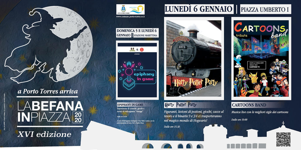 «La Befana in piazza è un evento nato a Porto Torres diversi anni fa, quando la giornata del sei gennaio non veniva festeggiata con manifestazioni ad hoc in nessun altro grande centro della Sardegna. L’amministrazione comunale ha voluto dare una continuità, innovando il format e dedicandolo soprattutto alle famiglie e ai bambini. Nelle scorse edizioni abbiamo organizzato la parata e lo spettacolo dei cartoons che hanno riscosso un grande successo – ricorda l’Assessora alla Cultura, Mara Rassu – e quest’anno abbiamo scelto come filo conduttore la saga di Harry Potter, che spazia dal mondo della letteratura a quello del cinema e che piace sia ai grandi che ai bambini. Un’avventura che coinvolge tutti e che potrebbe offrire spunti interessanti anche alle nostre attività commerciali per creare un percorso parallelo legato proprio a personaggi e scenari del mondo di Hogwarts».