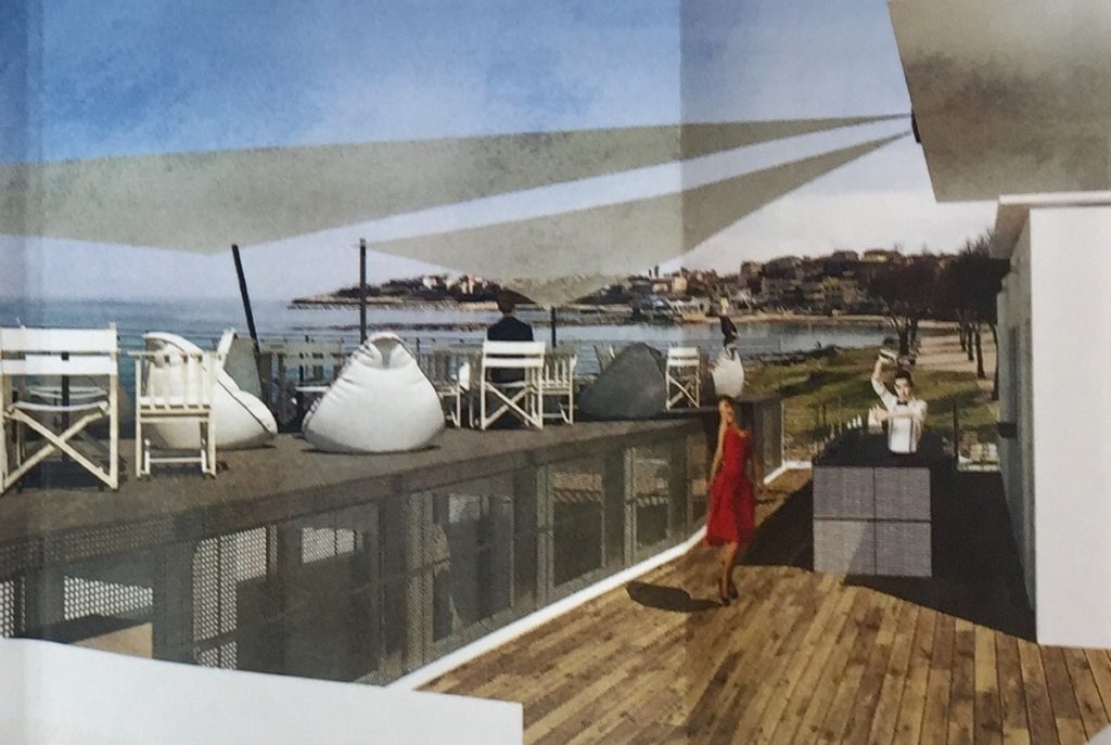 Al piano superiore verrà creata una terrazza panoramica al servizio del punto di ristoro, sfruttando la superficie posta sopra la pergola in cemento armato che sormonta il cortile esterno. Una delle principali novità riguarderà l’area esterna: si prevede l’installazione di una piattaforma in teak o materiale simile, amovibile, con sdraio, attrezzature per la balneazione, fari a basso consumo, punti wi-fi, totem informativi, colonnine di ricarica elettrica per mezzi e telefonini e punti di noleggio per monopattini elettrici. Ci saranno, come da finalità del bando, corridoi di libero ingresso alla spiaggia. Il progetto prevede anche la realizzazione di piazzette attrezzate con angoli barbecue e tavoli da picnic.