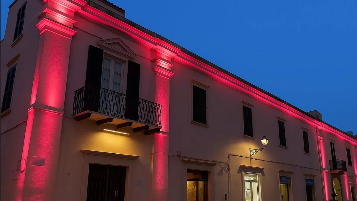 Palazzo del Marchese a Porto Torres illuminato di rosa