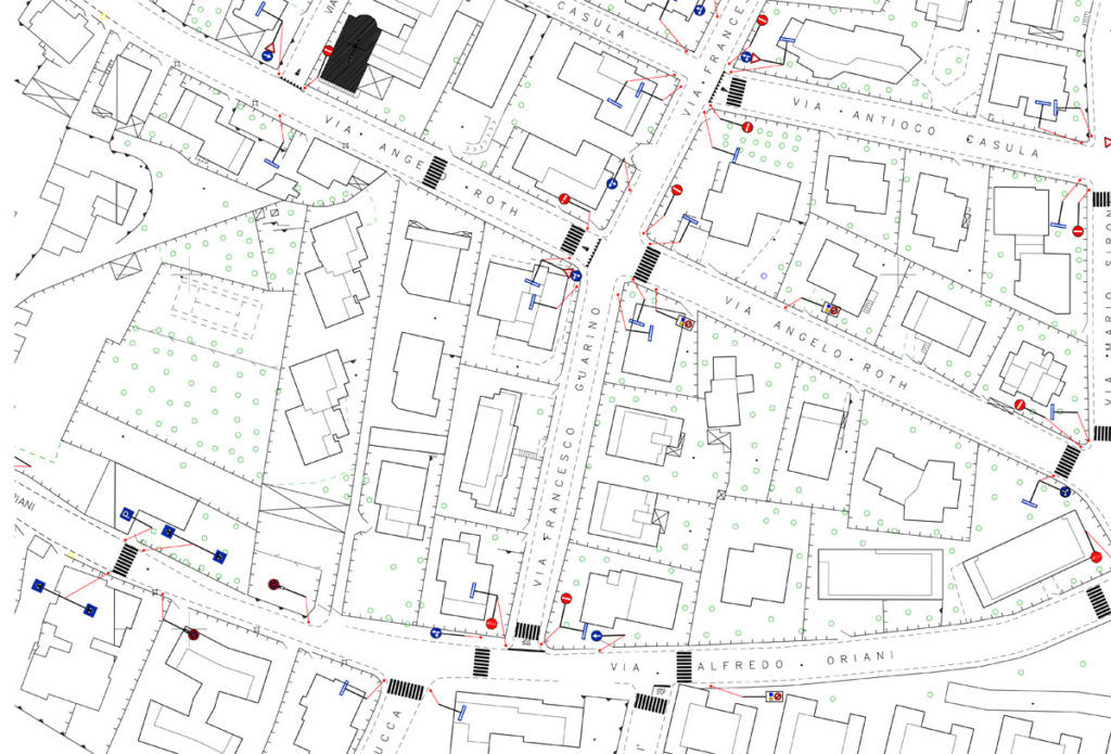 Via Guarino e via Sironi sono a senso unico, la prima in direzione di via Oriani e l’altra in direzione di via Abozzi.