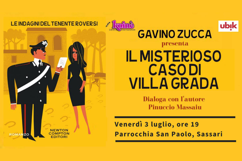 Venerdì 3 luglio 2020, a Sassari nello spazio all’aperto della Parrocchia San Paolo in via Besta, Gavino Zucca presenta il suo ultimo romanzo “Il misterioso caso di Villa Grada”, edito da Newton Compton editori. L’autore dialogherà con Pinuccio Massaiu.