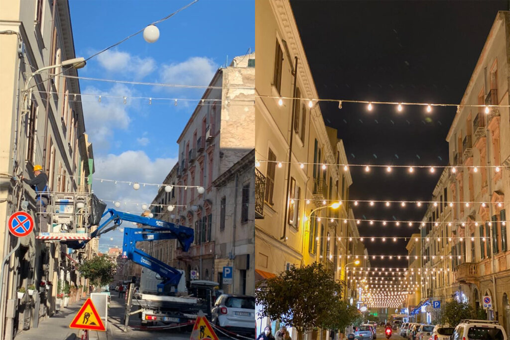 Sollevare lo sguardo, guardare il cielo e farsi coraggio. Un cielo di luci, il cielo di via Cavour a Sassari, attualmente oggetto di interventi di restyling utili a riaccendere luci ed entusiasmo sul teatro/museo a cielo aperto sito nel cuore della città.