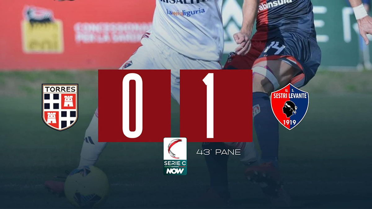 Il Sestri Levante passa a Sassari: un rigore realizzato a fine primo tempo decide il match che costa alla Torres pur seconda in classifica, la prima sconfitta casalinga della sua stagione. Vani i tentativi di pareggio rossoblù, discutibili alcuni fischi arbitrali, a passare dopo i 96’ di gioco sono gli avversari.