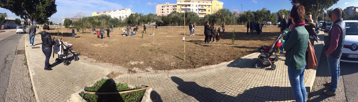 L’area è stata bonificata e ripulita con l’obiettivo di creare anche in questo nuovo quartiere della città un giardino pubblico. Sono stati piantati 90 alberi, tra cui quercus ilex, laurus nobilis, olea europea silvestris, tamarix gallica, ceratonia siliqua e morus alba.