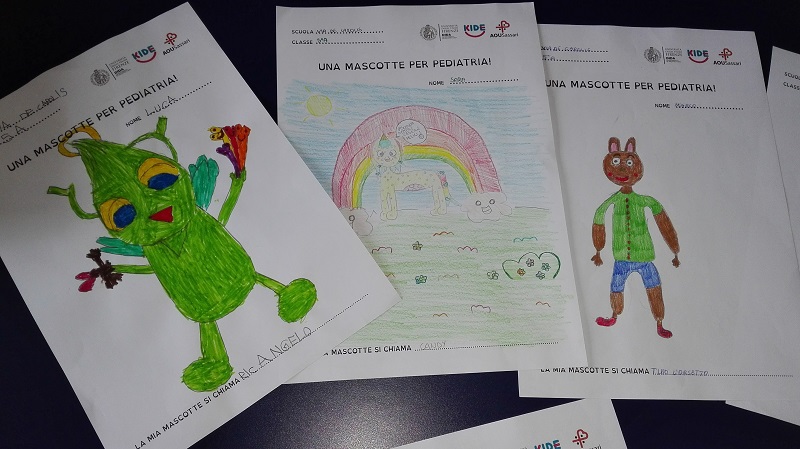 C’è un dinosauro di colore azzurro di nome Bing Bong, lo scoiattolo-infermiera Tina e l’elefantino Dino, con il camice da dottore, e poi un piccolo e vispo animaletto verde, Ricangelo, che tiene in mano matite variopinte. Assieme a loro tantissimi altri personaggi, colorati e sorridenti, tutti rigorosamente disegnati dai bambini delle scuole elementari e dai ragazzi delle medie di Sassari che hanno partecipato al programma laboratorio “Una mascotte per Pediatria”.