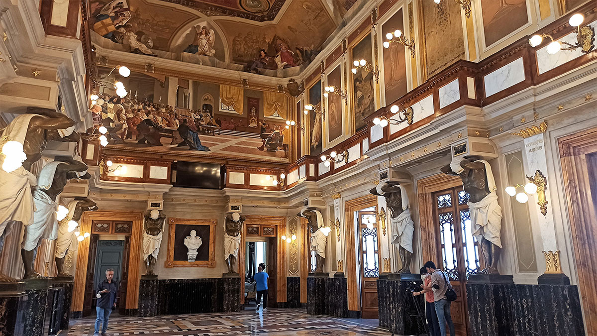 La Sala Sciuti, destinata nel tempo a sala consiliare, con volte dell’altezza di oltre 12 metri, si presenta oggi in tutta la sua magnificenza e regalità, restituendo ai sassaresi e a tutti i sardi, un monumento architettonico di grande pregio. Il grande salone, con i suoi meravigliosi affreschi come “L’ingresso di Giommaria Angioy a Sassari” e “La Proclamazione della Repubblica Sassarese”, terminato nel 1882, aveva bisogno di un importante lavoro di riqualificazione.