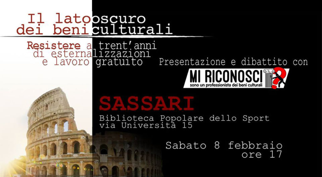 Saranno presentati e discussi a Sassari per la prima volta i risultati dell’inchiesta “Cultura, contratti e condizioni di lavoro”, già presentata alla sala stampa della Camera dei Deputati il 30 ottobre 2019 e poi in tante città d’Italia. Interverrà Leonardo Bison, del coordinamento nazionale di Mi Riconosci. Seguirà un ampio dibattito aperto a tutti i lavoratori del settore e a tutta la cittadinanza.