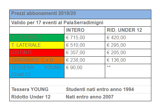 A partire da giovedì 11 luglio chi desidera sottoscrivere un abbonamento per il campionato LBA 2019-2020 può rivolgersi presso la biglietteria di via Pietro Nenni (dal lunedì al venerdì, dalle 10:00 alle 13:00 e 16:30 alle 19:00), per garantirsi un posto per la regular season LBA 2019-2020.
