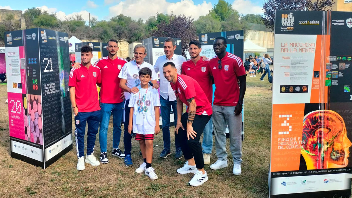 Sassari. La Torres c’è. C’è quando c’è da ribadire concetti preziosi, da amplificare messaggi importanti. Stamattina, una delegazione del team rossoblù protagonista e capolista del campionato di serie C (girone B) ha partecipato all’evento “No Dipendenze. Plein air”, manifestazione organizzata dalla Asd Sport e Salute del presidente Elisabetta Anna Pusceddu che ha radunato negli spazi aperti dello stadio dei Pini “Tonino Siddi” di centinaia di studentesse e studenti delle scuole di Sassari e Porto Torres.