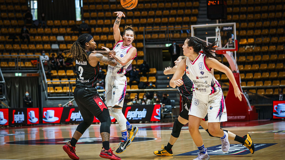 Bologna. Hines-Allen 21, Pasa 2, Tassinari 2, Ciavarella 6, Tava 9, Barberis 6, Dojkic 24, Turner 14, Battisodo 6, Zandalasini 7. All. Lino Lardo