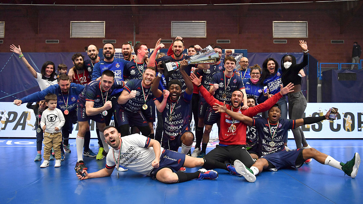 Dopo meno di un lustro dalla sua fondazione, la Raimond Handball Sassari scrive il suo nome nell’Albo d’Oro di una competizione nazionale, portando in Sardegna la Coppa Italia. Al termine di una partita infinita e ricca di emozioni, i rossoblù portano a casa il primo trofeo di una squadra sarda maschile. Non sono bastati settanta minuti per decretare la vincitrice, alla serie dai sette metri decisivo Marco Spanu, capace di far trionfare i sardi con la parata decisiva su Nelson.
