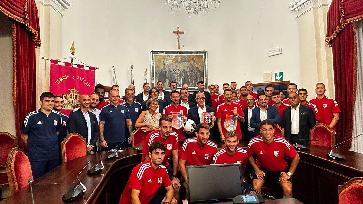 Sassari. La prima squadra della Torres, lo staff tecnico e la dirigenza al gran completo capitanata dal presidente Stefano Udassi e dalla proprietà Abinsula (Pierluigi Pinna e Andrea Maddau) si radunano sotto Palazzo Ducale. Ci sono tutti. Salgono le scale e fanno il loro ingresso nella sala del Consiglio comunale. Prendono posto sugli scranni, là dove si sviluppa la vita amministrativa della città. Arrivano poi i padroni di casa, il Sindaco Nanni Campus, il presidente del Consiglio Comunale Maurilio Murru, l’assessora allo sport Rosanna Arru, l’assessore al Bilancio Carlo Sardara e l’assessore all’Urbanistica Nicola Lucchi.