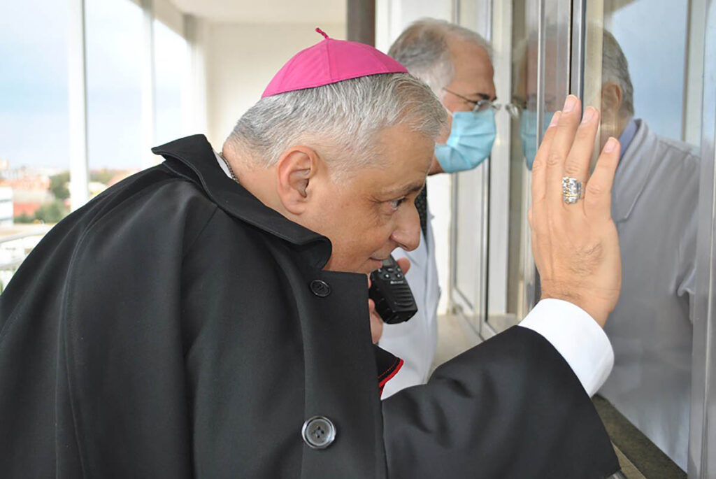 «Come state, state migliorando?» E ancora: «Vi vedo più in forze. Oggi sono qui per salutarvi e darvi la benedizione». Così nella tarda mattinata di oggi, l’arcivescovo di Sassari, monsignor Gian Franco Saba, ha saluto dalle finestre, che si affacciano sulle terrazze del secondo e terzo piano di Malattie infettive, alcuni dei pazienti ricoverati per Covid-19. E la visita dell’alto prelato sassarese è stata una vera e propria sorpresa per pazienti e operatori. Una visita che ha preso il via con la benedizione del quadro dedicato a Nostra Signora del Buon Cammino, donato a Malattie infettive a settembre dal gremio dei Viandanti di Sassari.