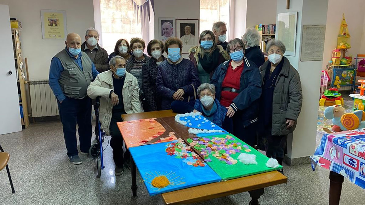 La presidente del Centro di preparazione alla famiglia di Sant’Agostino, Sandra Piras, e la direttrice del Consultorio, Angela Baio, hanno chiesto agli ospiti di Casa Serena di realizzare dei pannelli simili a quelli che avevano apprezzato in fotografia per abbellire la stanza che sarà utilizzata per i Gruppi di parola. Gli anziani e le educatrici hanno accolto la richiesta con entusiasmo e realizzato dei pannelli che il 6 febbraio un gruppo di anziani ha portato nei locali di Sant’Agostino. Sono stati accolti con grande calore e disponibilità da diversi soci del C.P.F. e per tutti loro è stato emozionante potersi incontrare finalmente di persona dopo le limitazioni dei mesi precedenti.