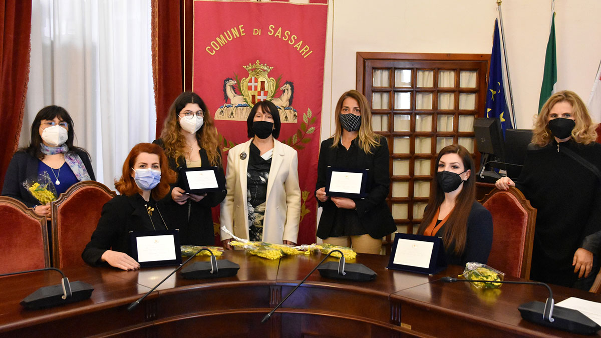 Sassari. Cinque donne, cinque figure che con il loro carisma, le loro competenze e la loro storia, hanno dato lustro a Sassari a livello nazionale e internazionale. A Francesca Sassu, Elisabetta Delogu, Liliana Cano, Franca Bergamini e Simonetta Sotgiu l’Amministrazione comunale ha voluto dedicare cinque targhe per ringraziarle di quanto hanno fatto per la città. La cerimonia si è tenuta oggi, 8 marzo, Giornata internazionale della Donna, nella sala del Consiglio di Palazzo Ducale. A fare gli onori di casa il presidente Maurilio Murru, il sindaco Nanni Campus, insieme a una rappresentanza della Giunta, dell’Assemblea civica e della commissione comunale delle Pari Opportunità.