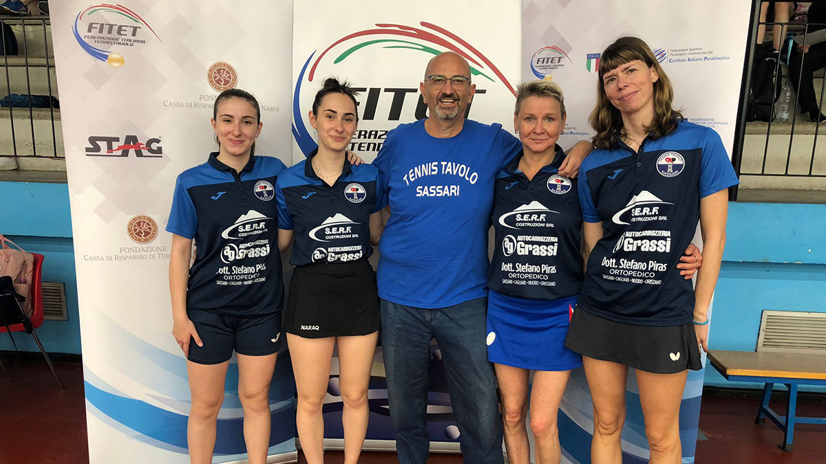 Dopo aver vinto il girone di B femminile, il Tennistavolo Sassari vince anche i playoff nel concentramento di Terni e vola in A2.