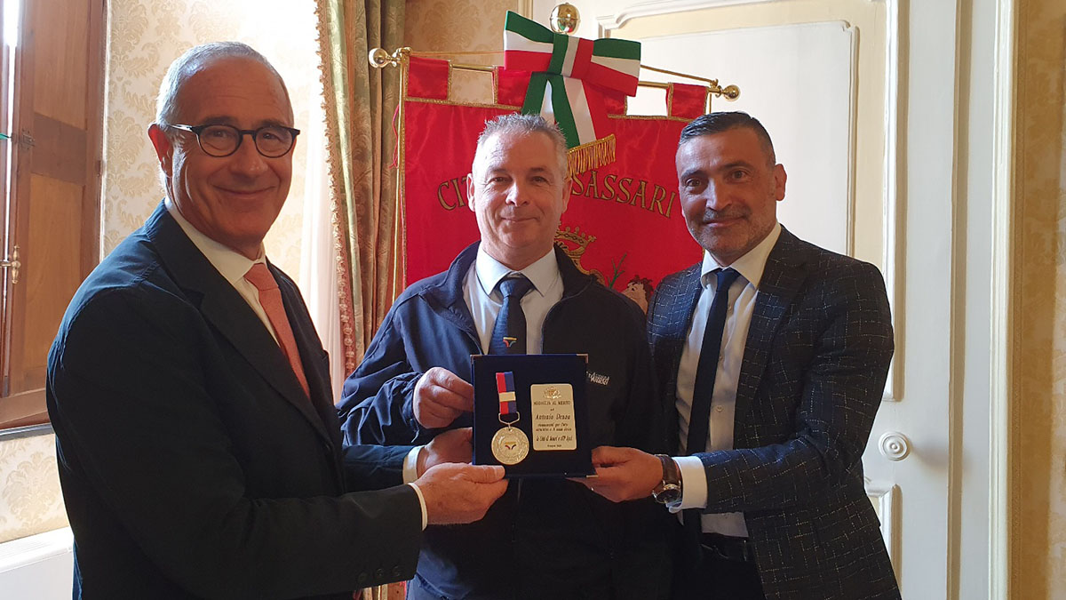 Sassari. Cerimonia questa mattina a Palazzo Ducale alla presenza del sindaco Nanni Campus e del presidente dell’Azienda Trasporti pubblici di Sassari Paolo Depperu per la consegna della medaglia al merito civile per l’alto gesto altruistico al signor Antonio Denau, l’autista del bus che nel 2021, durante un regolare servizio in città, riuscì a sventare un tentativo di suicidio di un giovane sul ponte di Rosello.