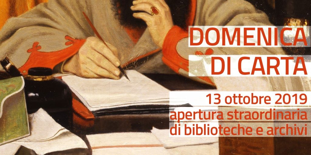 Domenica 13 ottobre 2019, torna l’apertura straordinaria di Biblioteche e gli Archivi statali, promossa dal MiBACT per valorizzare non solo i musei e le aree archeologiche, ma anche i monumenti di carta, patrimonio altrettanto imponente e ricco, conservato e valorizzato in splendidi luoghi della cultura.