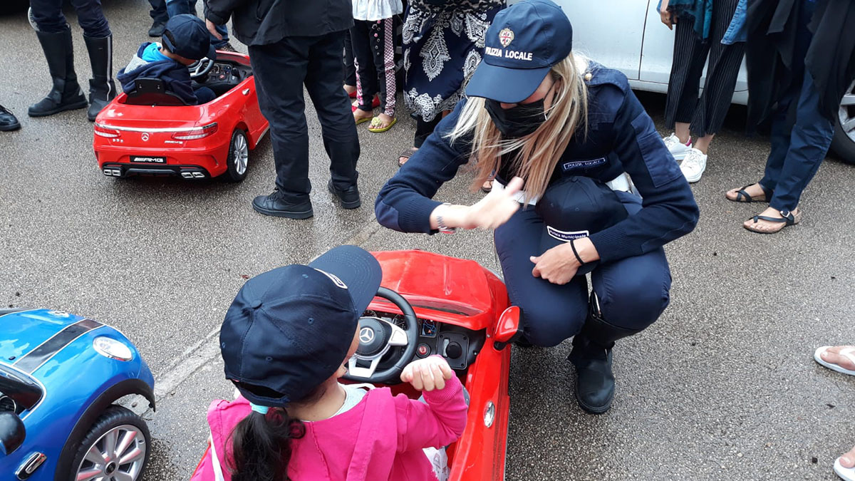 Le bambine e i bambini, con i cappellini della Polizia locale e le magliettine abbinate, si sono divertiti a sfrecciare sulle macchinine elettriche, a provare le biciclette e giocare con gli agenti, che non si sono certo tirati indietro e anzi hanno socializzato e scherzato con loro.