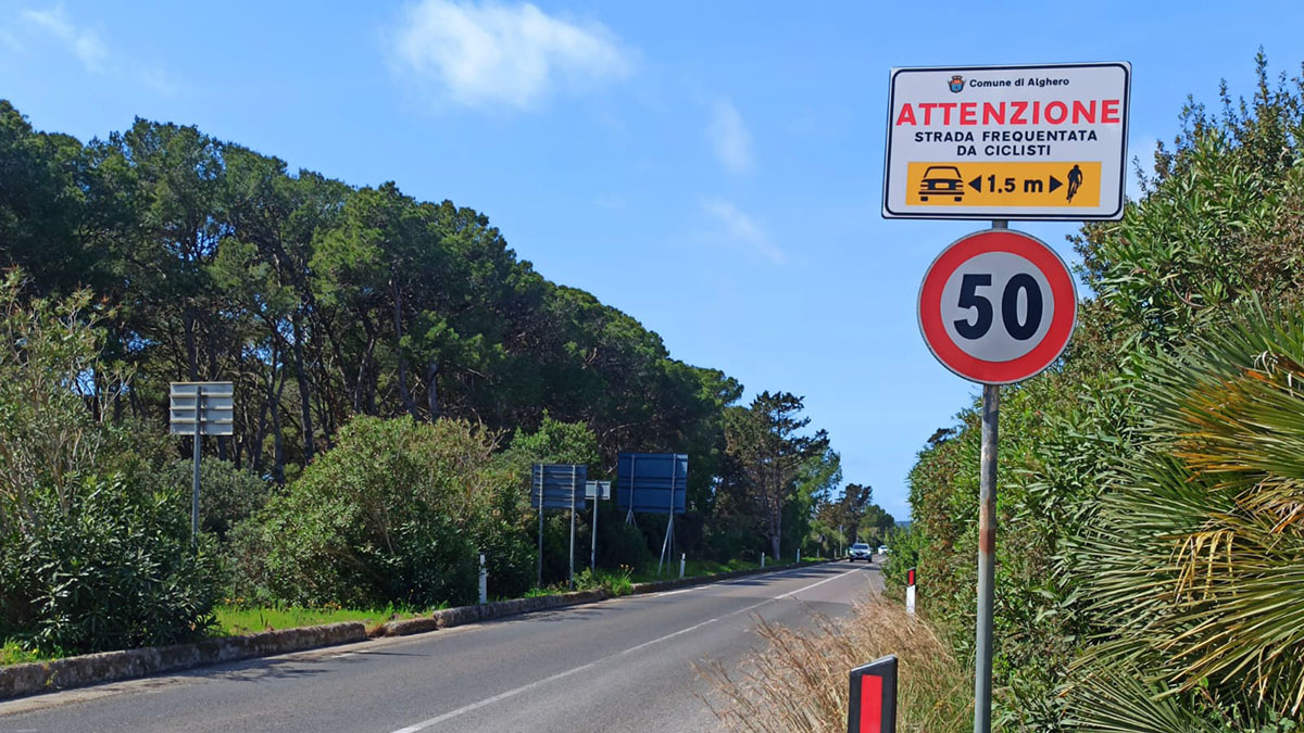 Obiettivo: sicurezza stradale. Grazie ad un finanziamento con fondi propri, la Provincia di Sassari ha installato sulle strade della Nurra maggiormente frequentata dei ciclisti, dei cartelli indicatori che raccomandano prudenza e attenzione ai ciclisti.